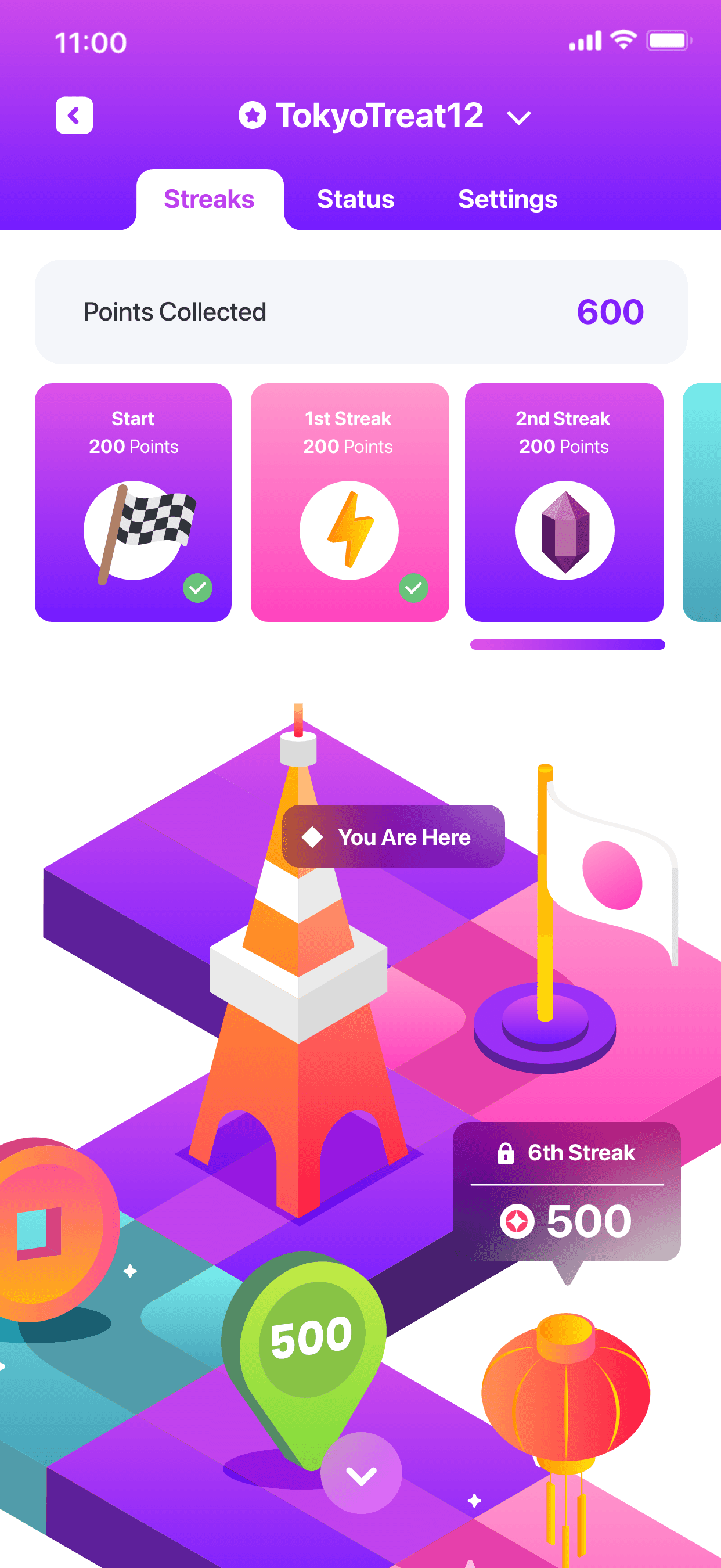 Designed an interactive Tokyo map where users progress and unlock rewards.